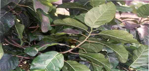 Helaian berbentuk bulat telur atau elips, dengan pangkal membulat, ujung menyempit cukup tumpul, tepi rata, 9-30 kali 9-16 cm, dari atas hijau tua mengkilat, dengan banyak bintik-bintik yang pucat, dari bawah hijau muda, sisi kiri kanan tulang daun tengah dengan 6-12 tulang daun samping; kedua belah sisi tulang daun menyolok karena warnanya yang pucat.